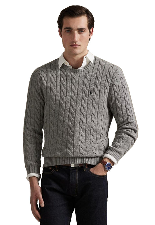 Maglia pullover girocollo treccia grigia cotone Polo Ralph Lauren P26