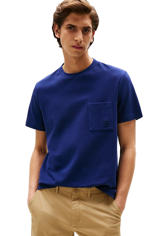 T-shirt girocollo cotone blu royal con tasca Tommy Hilfiger A25