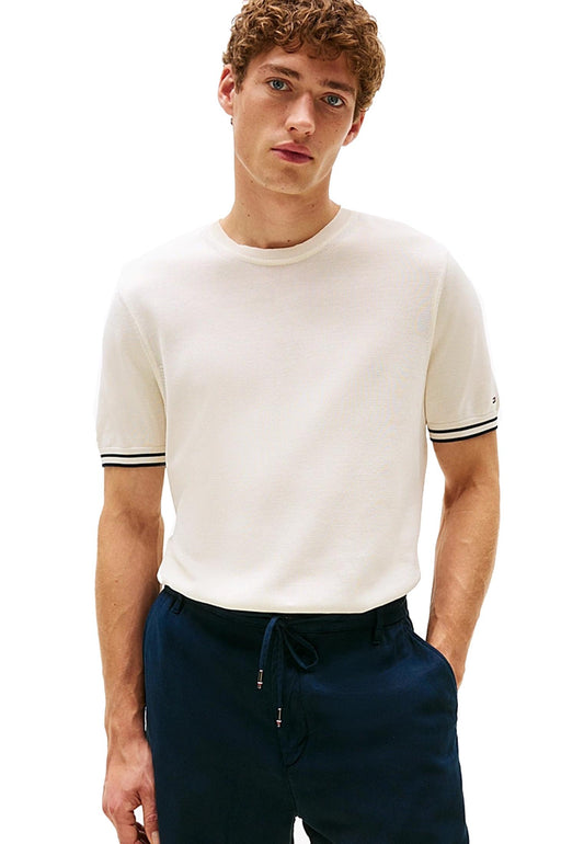 T-shirt girocollo in maglia di cotone bianca contrasto righe Tommy Hilfiger A25