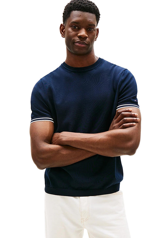 T-shirt in maglia cotone contrasto righe blu Tommy Hilfiger A25