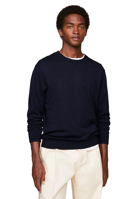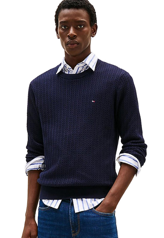 Maglia pullover girocollo cotone blu spina di pesce Tommy Hilfiger P25