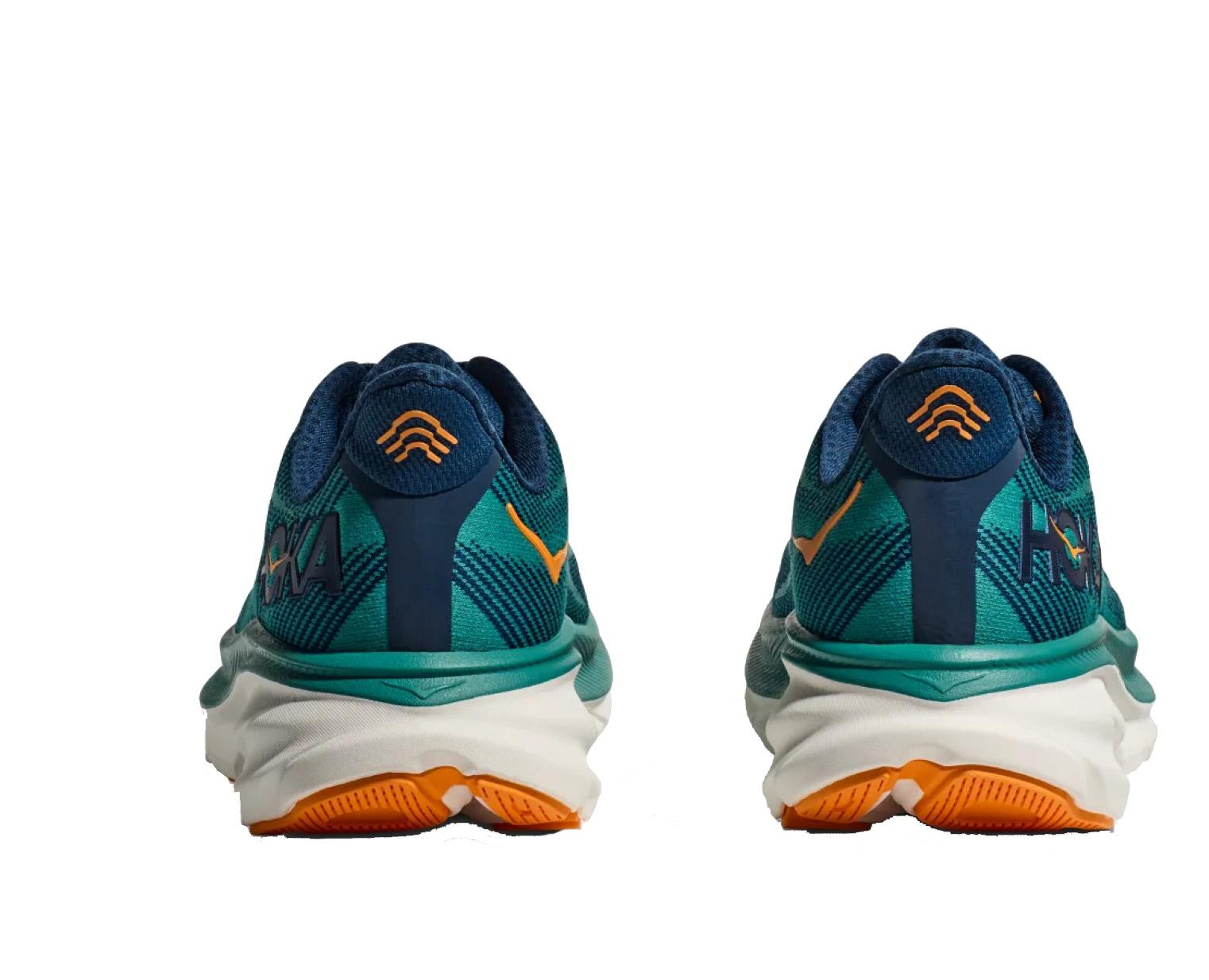 Scarpe sneakers da corsa uomo verde acqua/bianche/arancioni Clifton 9 Hoka A24
