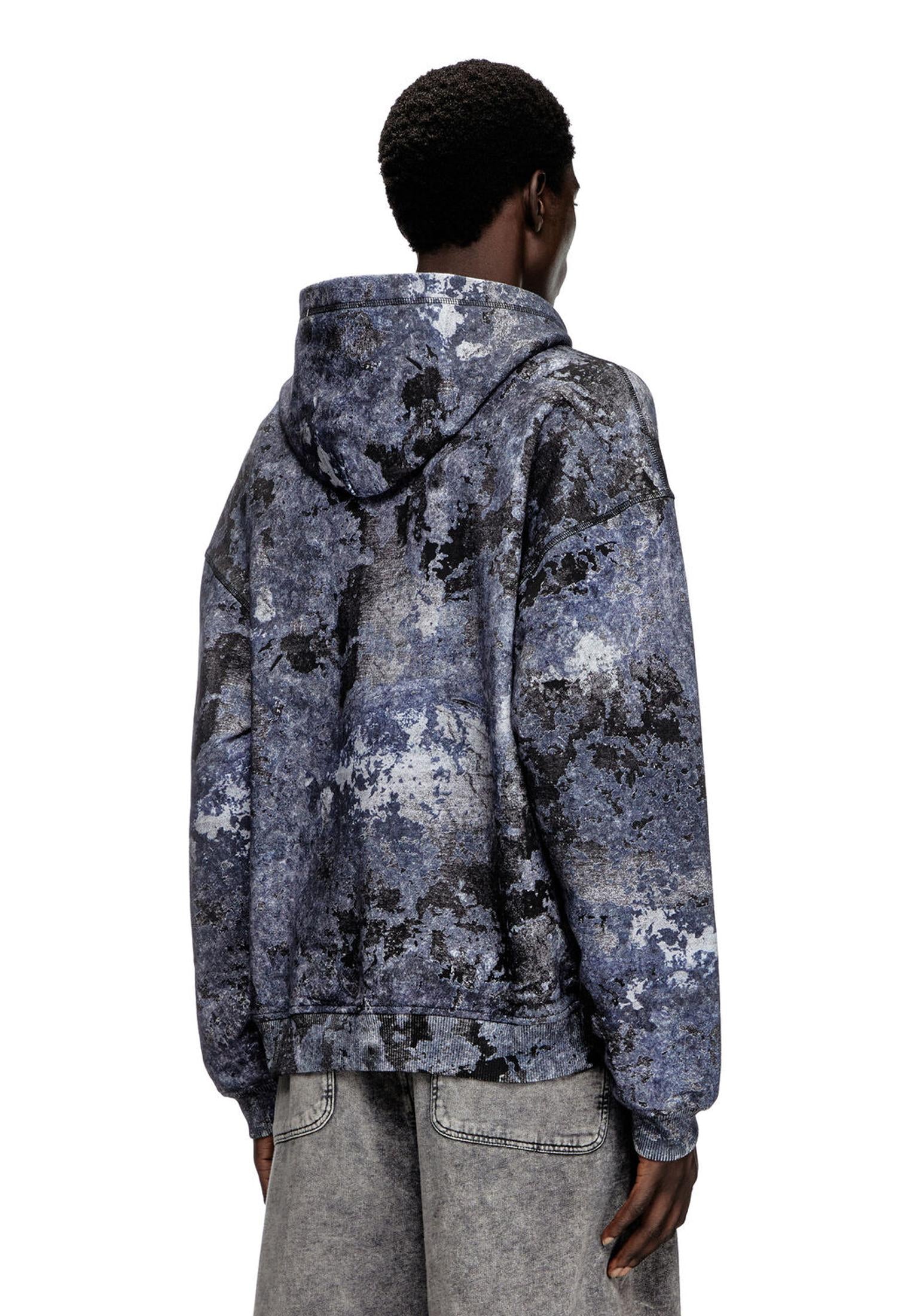 Felpa con cappuccio effetto marmorizzato blu S-Boxt-Hood-R8 Diesel P25