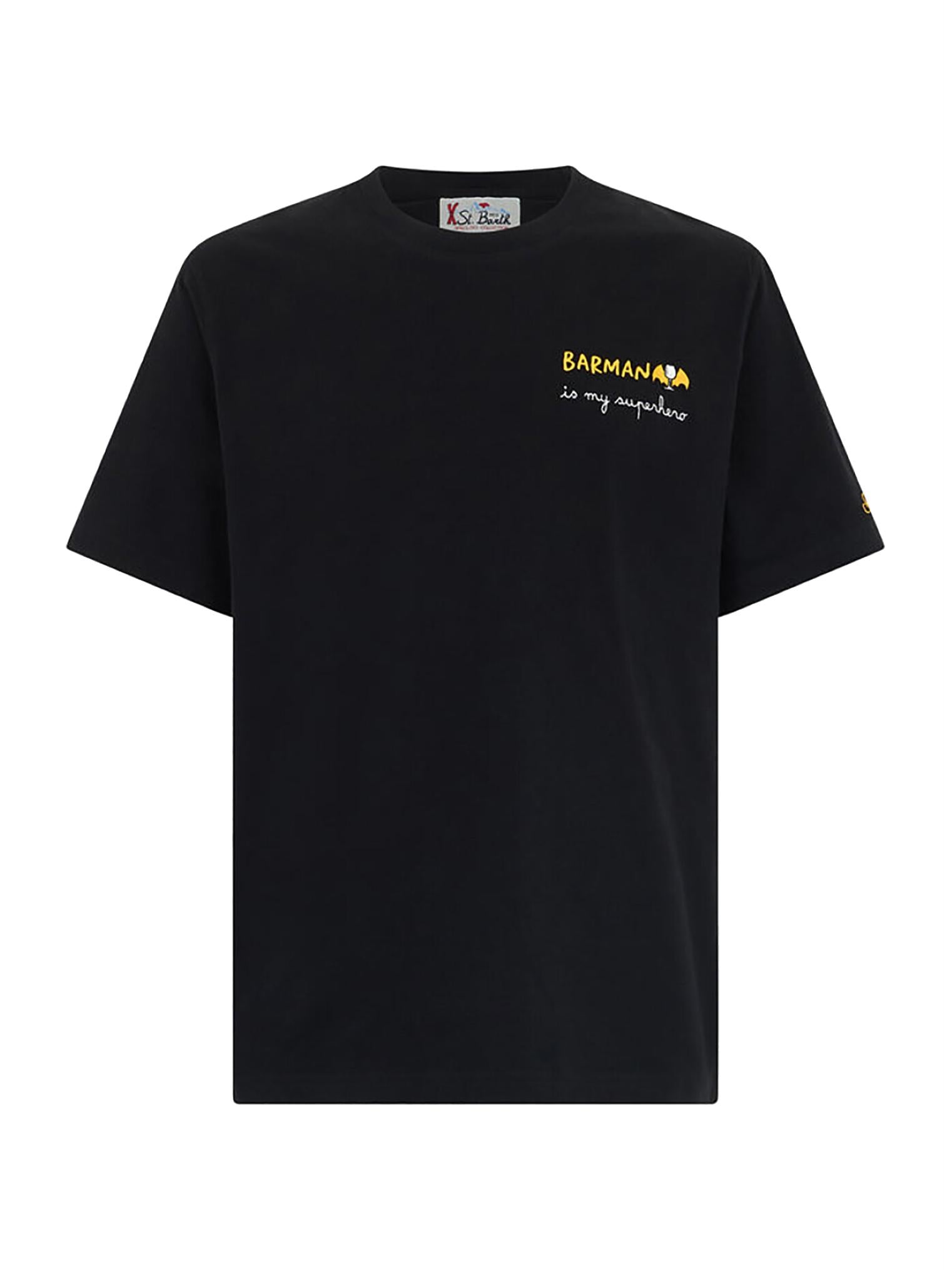 T-shirt in cotone con logo barman nera MC2 Saint Barth A24